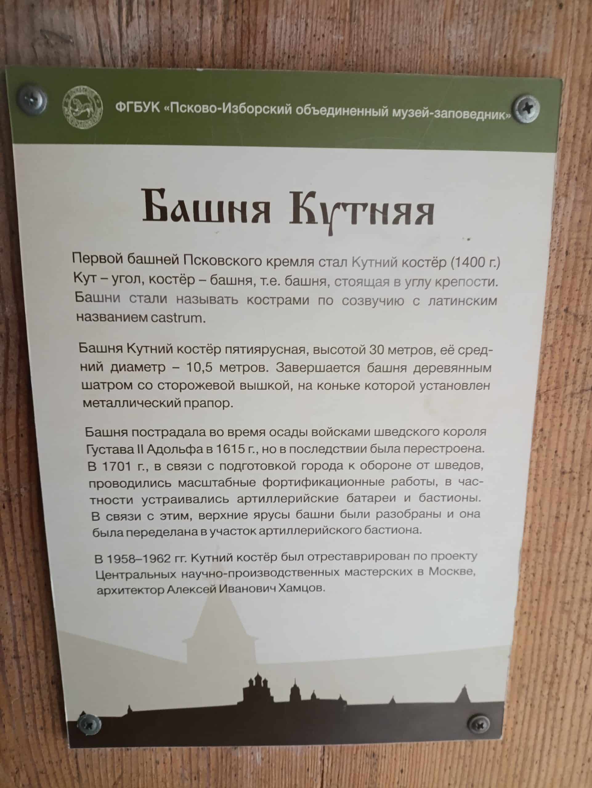 Башня Кутекрома — одна из самых живописных башен Псковского Кремля, без которой невозможно представить облик древнего Пскова. Расположенная в стратегически важном месте — при слиянии рек Великой и Псковы — она веками охраняла водные подступы к городу вместе с близлежащей Плоской башней, образуя мощную оборонительную систему.